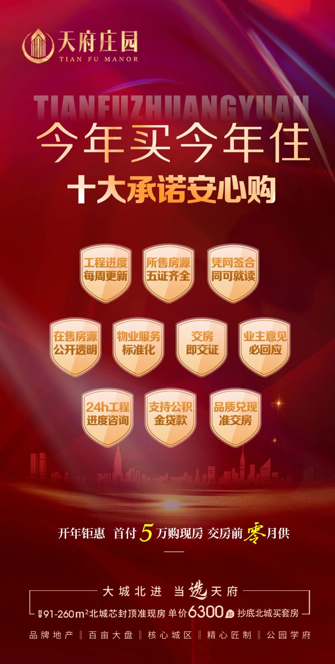 在此天府庄园项目为保证客户买的放心、安心特此推出十大承诺!