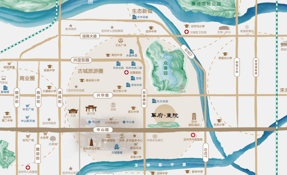 那么,中天集团·华府东院位于定州东城核心位置,区域内无论是商业、交通、教育、医疗、休闲等各方面资源配套,都是定州浓墨重彩的一笔,集行政中心、商业中心、娱乐休闲、人文休闲、私享居住于一体,跃居定州宜居优选之一!
