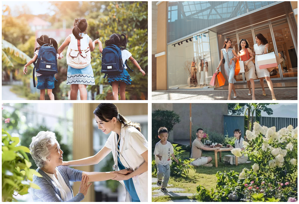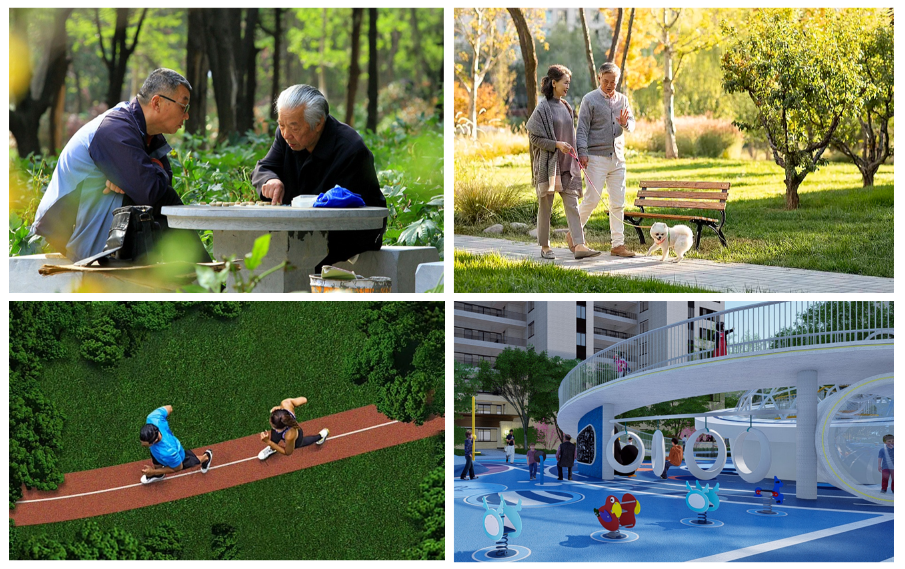 中天集团·华府东院洞悉定州置业人群心理需求,从购房者的视角,运用场所塑造和空间设计的手法,提出“新生活”的概念。例如,成年人活动主要集中在晚上下班以后,以及周末休息时间,主要进行健身、休闲类活动,如跑步、散步遛狗等;小孩的活动分布在全天,下午和晚上活动强度较大,主要进行游戏类活动。老年人活动分布在全天,早晨、下午和晚上活动强度较大,主要进行社交、健身、亲子类活动,如晨练、照看小孩、散步、棋牌等。