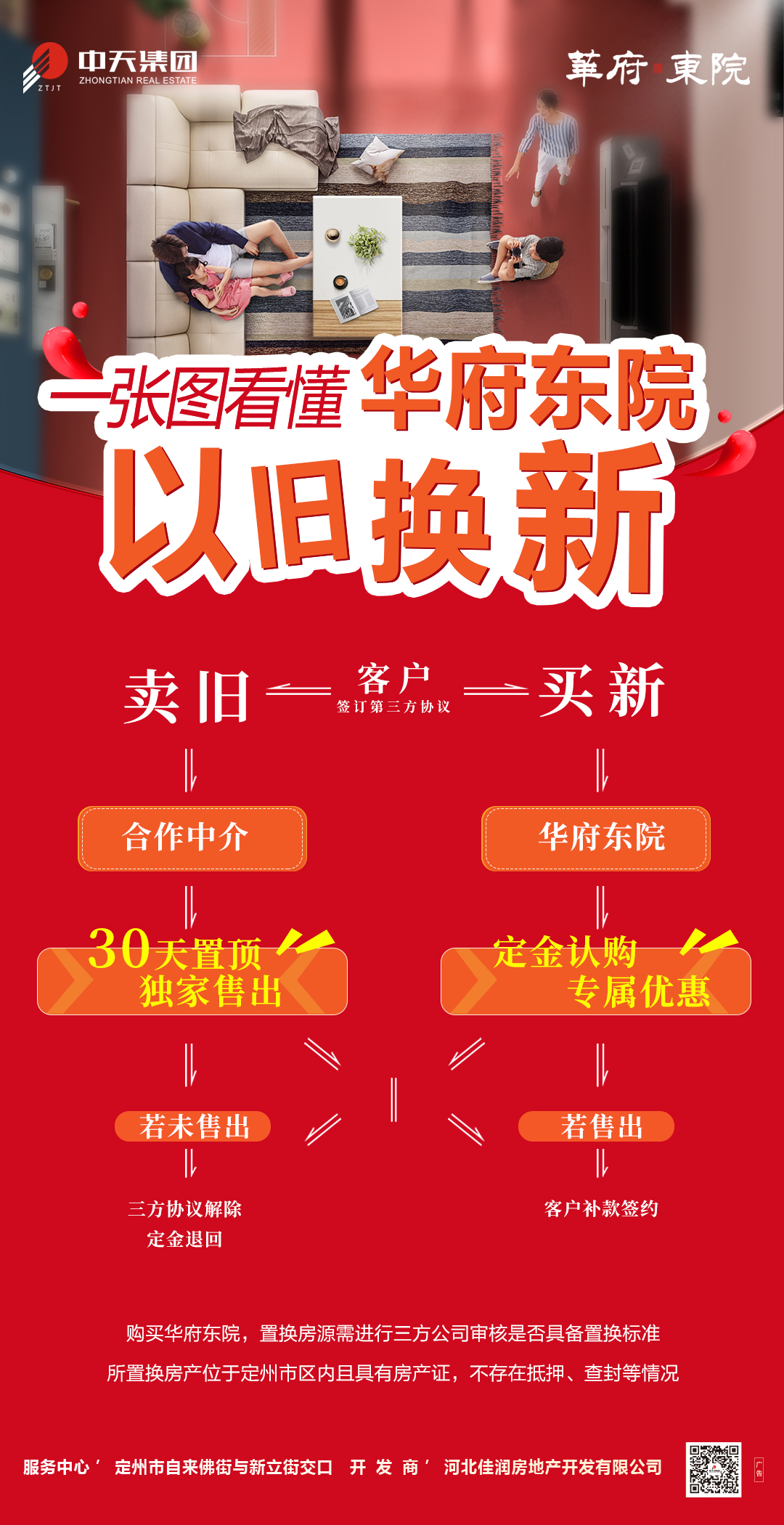 一站式服务,全流程省心置换:购买中天地产旗下物业,置换房源需进行三方公司审核是否具备置换标准;所置换房产位于定州市区内且具有房产证,不存在抵押、查封等情况;