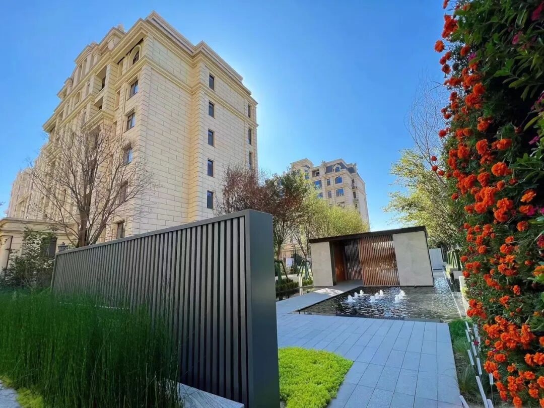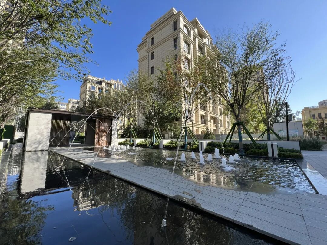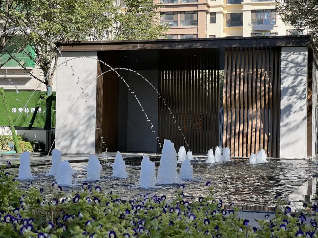 不同角度的光线折射,移步换位皆是不同光影体验。将曲线的优美展示的淋漓尽致,精心的设计和精细的施工处处诉说着匠心。花坛内外的植被疏密有致,每棵都精挑细选,追求360度完美,勾勒出不同的收放空间,远观近品皆有不同风情。