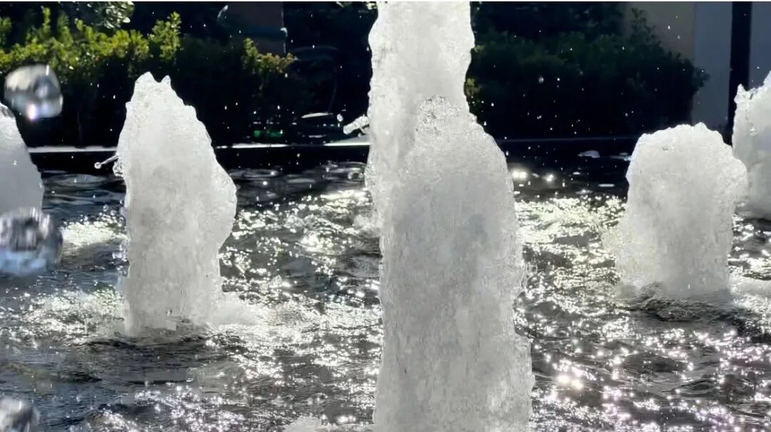 静水映射出周围树木婆娑倒影,自然、安静,简洁、纯粹,营造尊贵和仪式感,水底散置的片石,营造质朴、自然、生态的空间感。