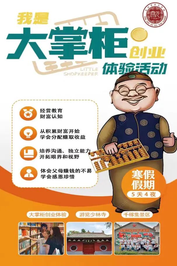 从积累财富开始,到学会合理分配财富并赚取更大收益,我们给予孩子一间商铺,为孩子量身定制大掌柜创业体验,孩子们将学习如何赚钱、花钱,学会增长财富。