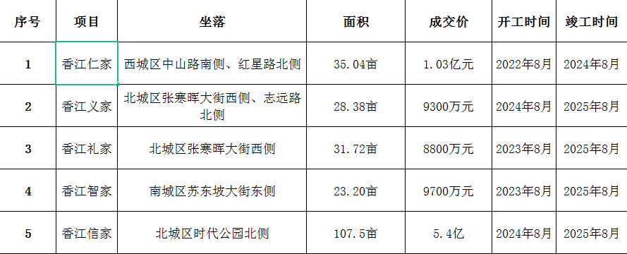 2024年3月12日,河北香江集团保定标而路房地产开发有限公司在国有建设用地使用权拍卖中,以人民币5.4亿元中标竞得位于北城区时代公园北侧【2024】8号、9号国有建设用地使用权(原新市政府大楼中心及周边土地)。