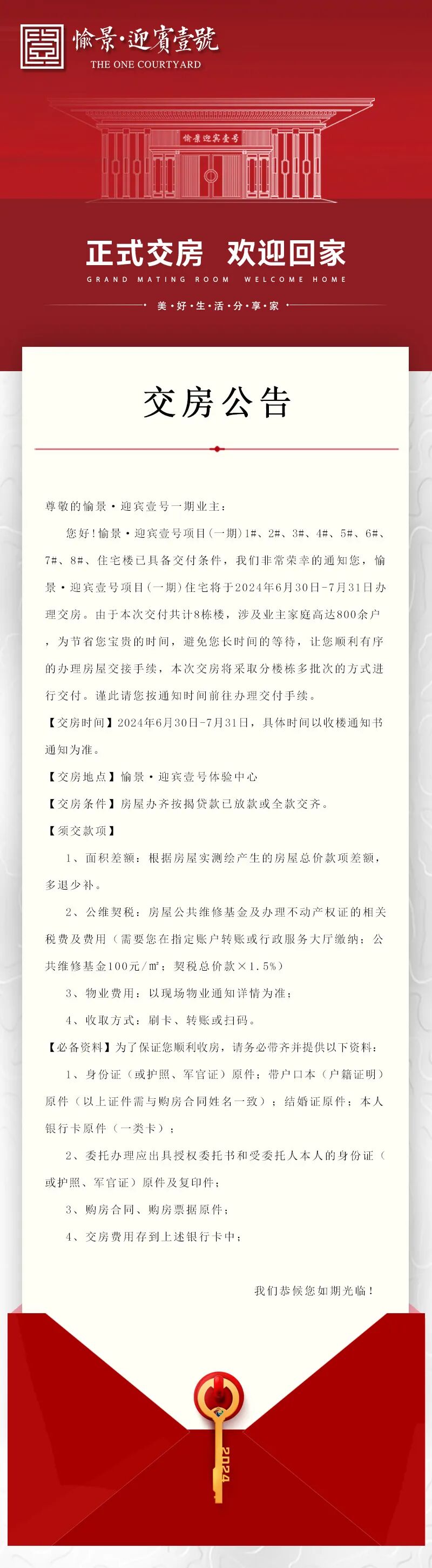 交房时间定了!分楼栋多批次,涉及800余户业主!